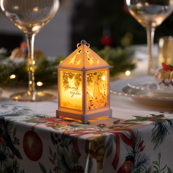 Светодиодная фигура «Белый фонарь с лисой» 6.3 × 12 × 6.3 см, пластик, батарейки AG13х3 (в комплекте), свечение тёплое белое