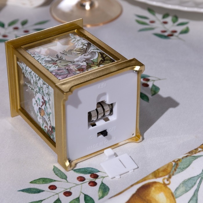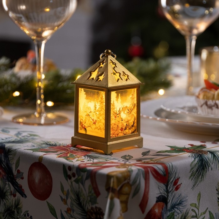 Светодиодная фигура «Золотистый фонарь с лосём и косулей» 6.3 × 12 × 6.3 см, пластик, батарейки AG13х3 (в комплекте), свечение тёплое белое