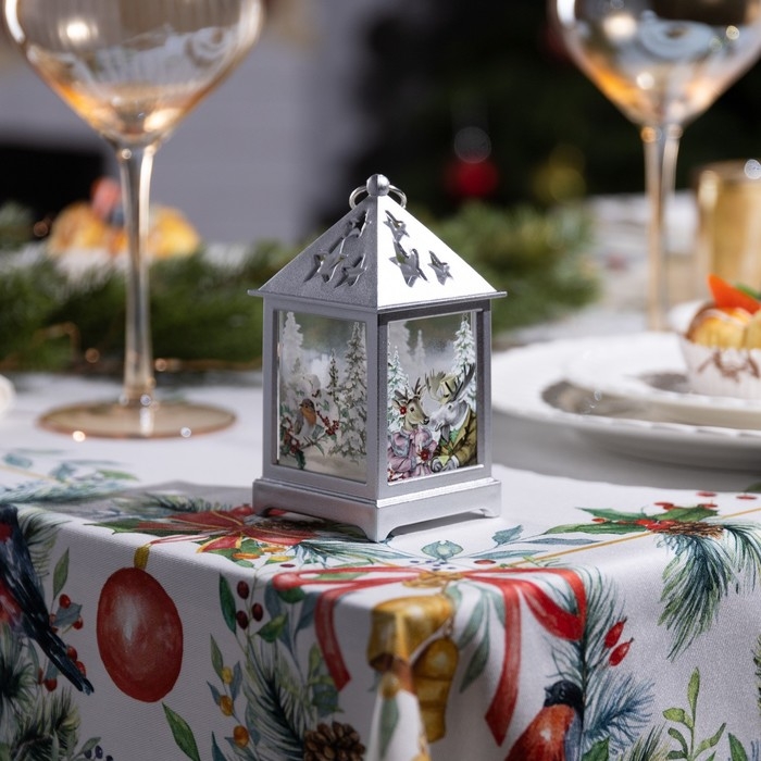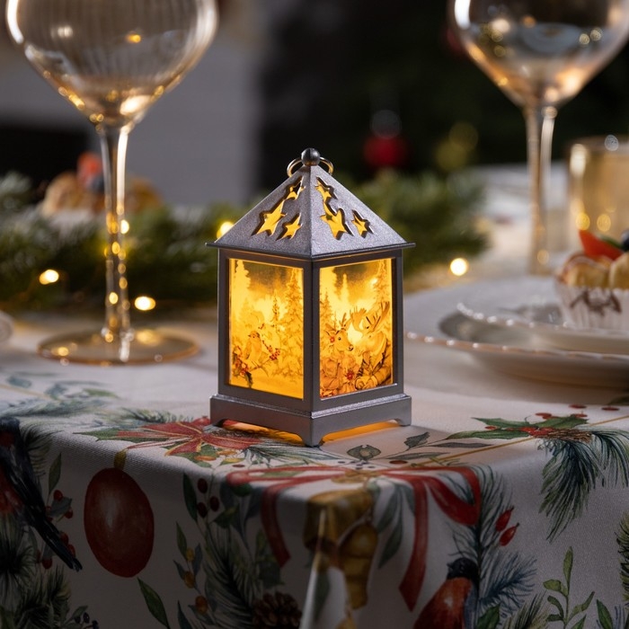 Светодиодная фигура «Серебристый фонарь с лосём и косулей» 6.3 × 12 × 6.3 см, пластик, батарейки AG13х3 (в комплекте), свечение тёплое белое