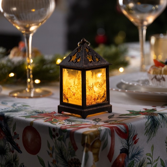 Светодиодная фигура «Бронзовый фонарь с лосём и косулей» 6.3 × 12 × 6.3 см, пластик, батарейки AG13х3 (в комплекте), свечение тёплое белое