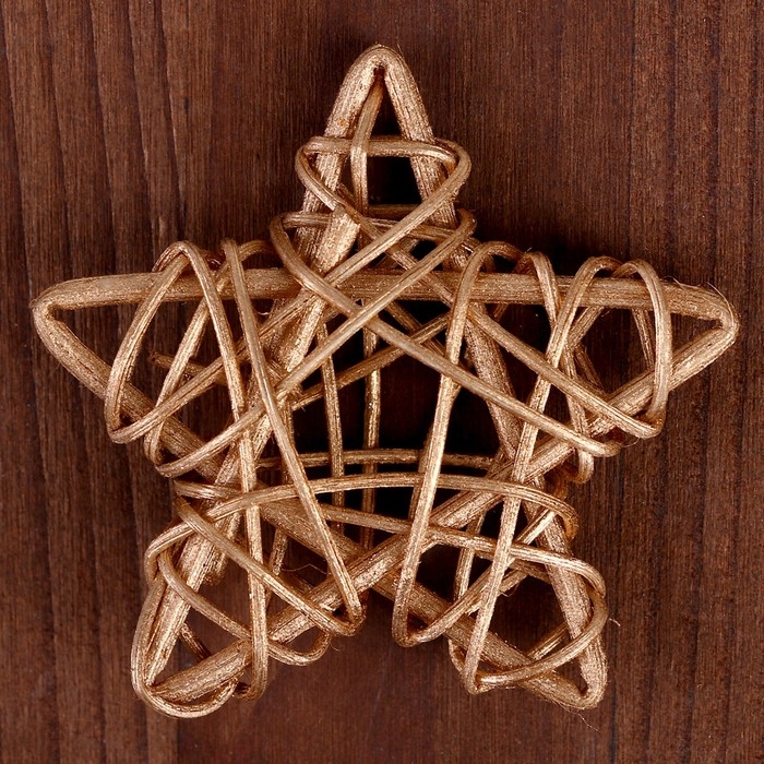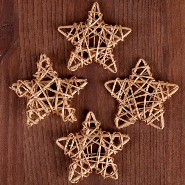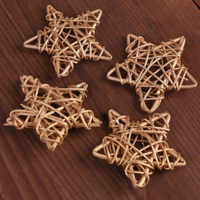 Декор для творчества из лозы «Звезда» набор 4 шт., размер 1 шт. — 6,5 см, цвет золото