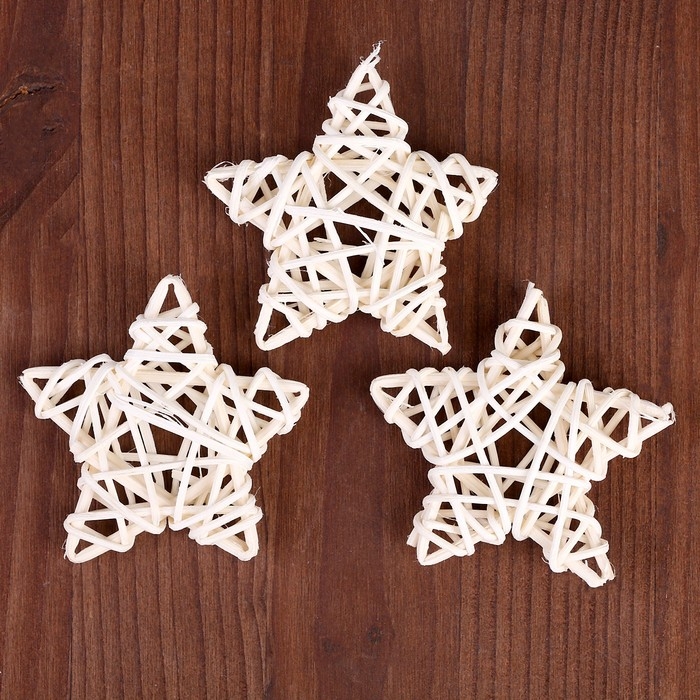 Декор для творчества из лозы «Звезда» набор 3 шт., размер 1 шт. — 6,5 см, цвет натуральный