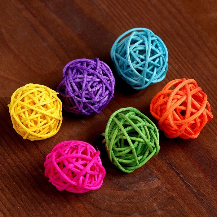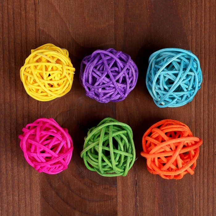 Шар декоративный из лозы, набор 6 шт., размер 1 шт. — 3 см, цвет МИКС