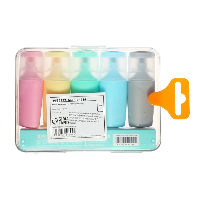 Набор маркеров-текстовыделителей 5 штук, 5 цветов, мини плоские, скошенные