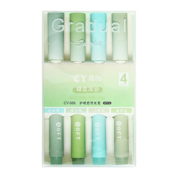 Набор маркеров-текстовыделителей 4 штуки/4 цвета, пастель сине-зеленый градиент