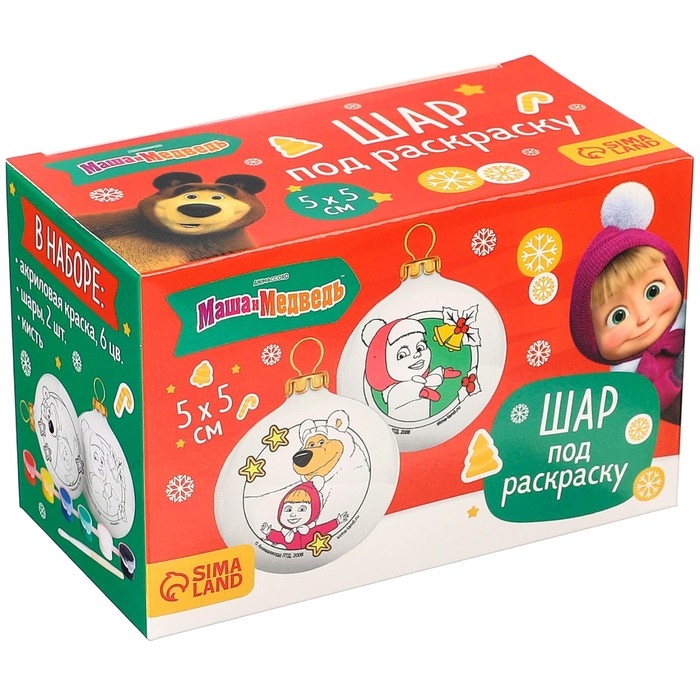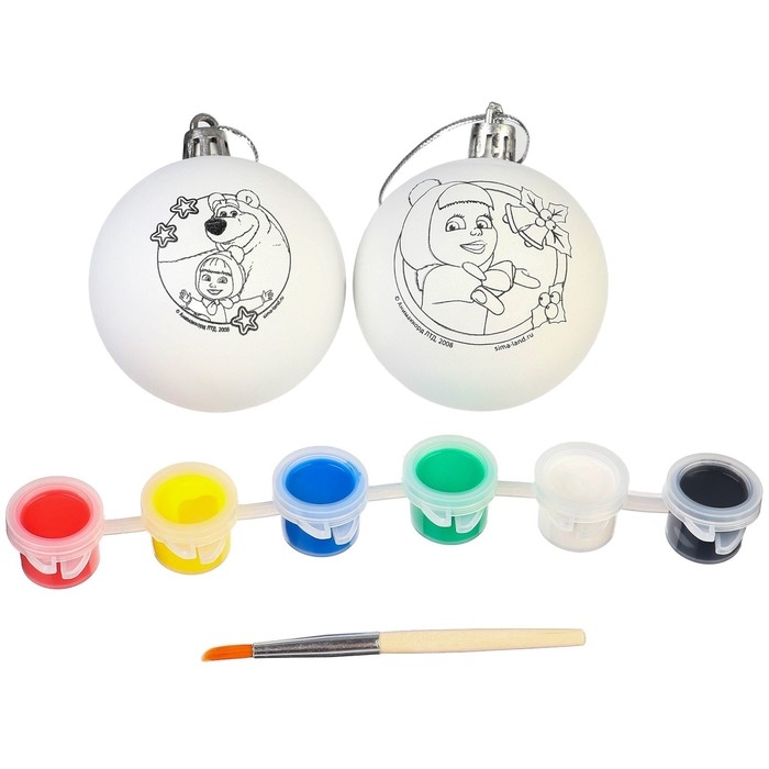 Набор для творчества на Новый год "Новогодний шар под раскраску", 2 штуки 5.5 см, Маша и Медведь
