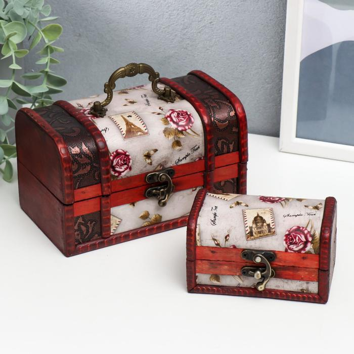 Шкатулка дерево состаренная "Розы и марки" набор 2 шт 6,5х11,5х7,5, 10,5х17х10,5 см