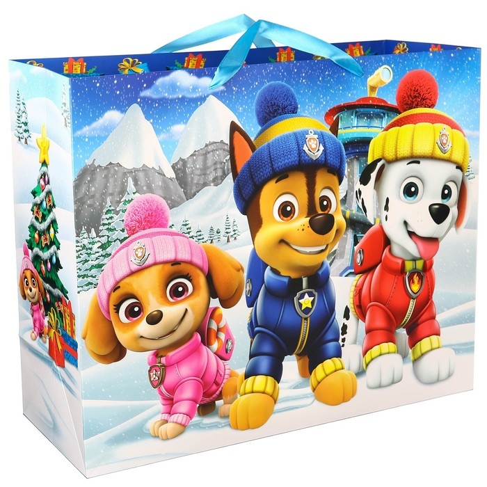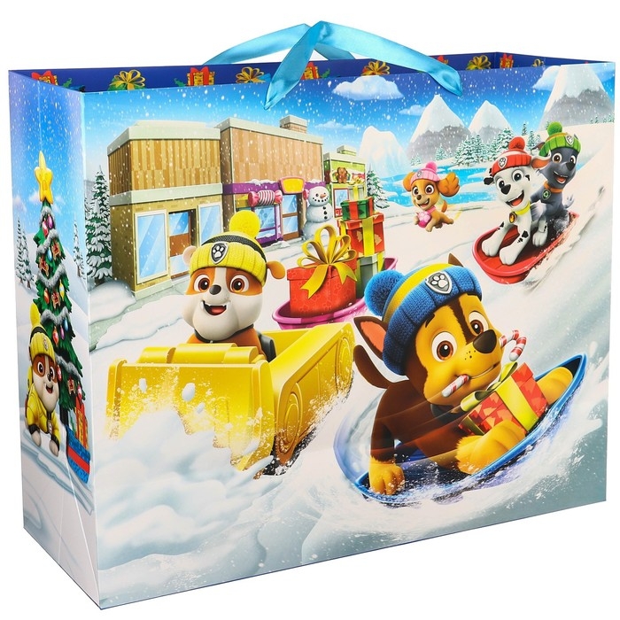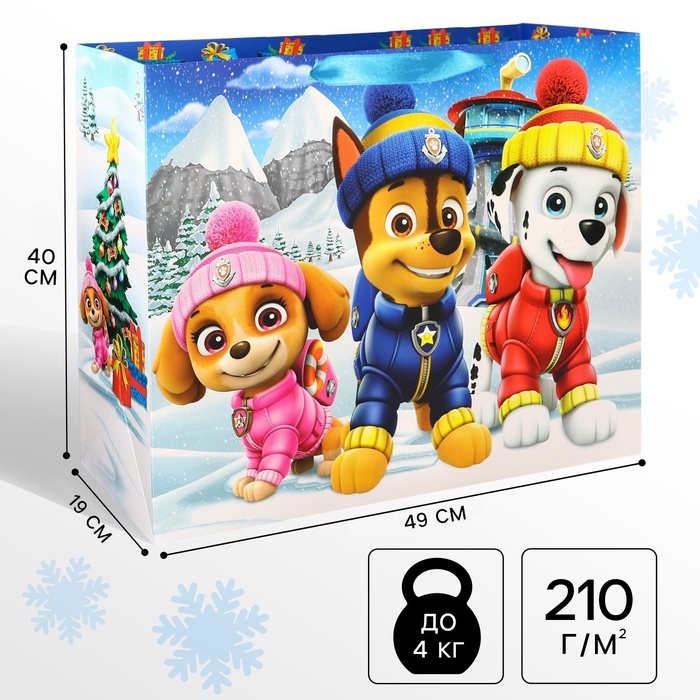 Новый год. Пакет подарочный "С Новым годом!" 49х40х19 см, Щенячий патруль