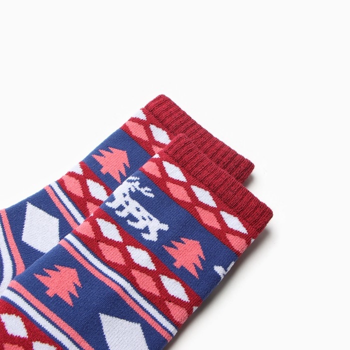 Новый год. Носки детские махровые "Скандинавские узоры" цвет красный, размер 22-24