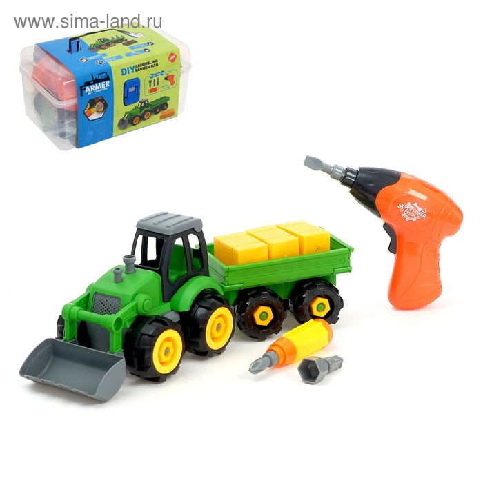 Конструктор винтовой «Трактор», с электрическим шуруповертом, отверткой и насадками