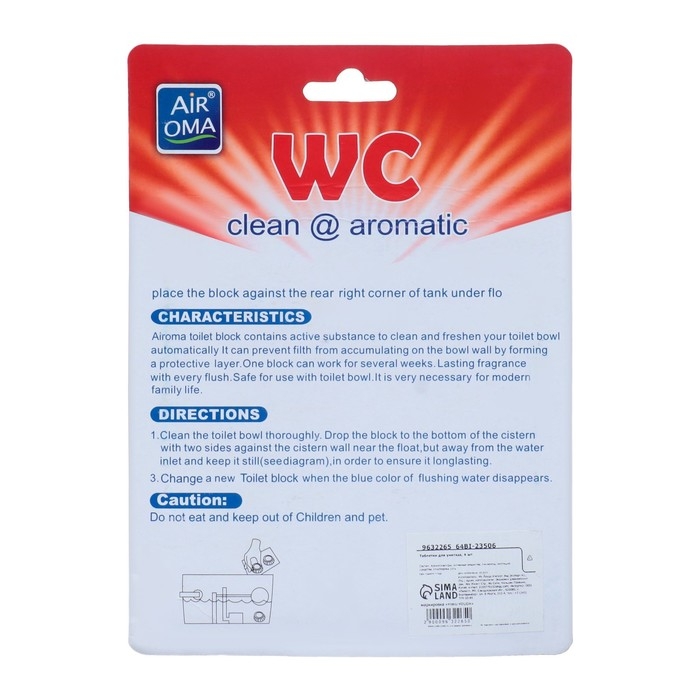 Применение: Выньте таблетку из упаковки и не снимая защитную пленку поместите в бачок унитаза подальше от сливного отверстия.