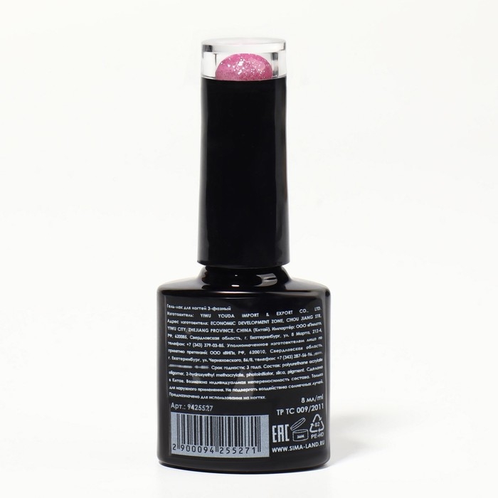 Гель лак для ногтей, «SHINING STAR», светоотражающий, 3-х фазный, 8мл, LED/UV, цвет малиновый (012)