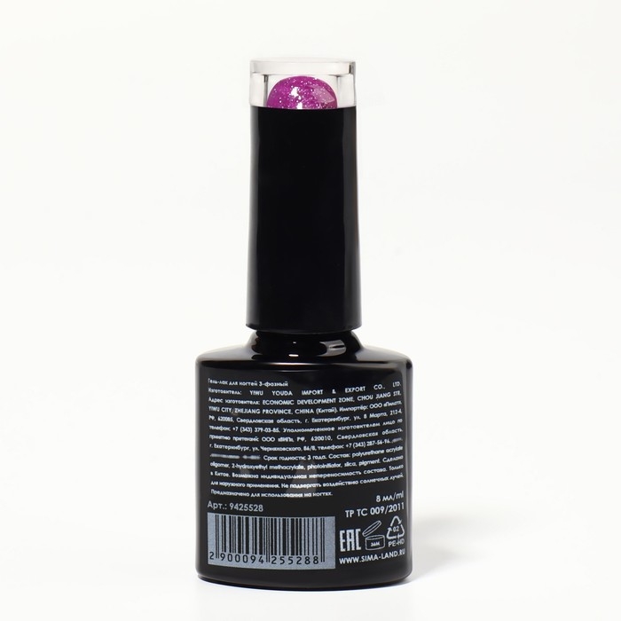 Гель лак для ногтей, «SHINING STAR», светоотражающий, 3-х фазный, 8мл, LED/UV, цвет пурпурный (013)