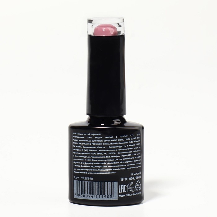 Гель-лак для ногтей трёхфазный LED/UV, 10мл, цвет 001 бело-розовый жемчужный