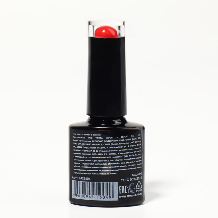 Гель лак для ногтей, «CLASSIC COLORS», 3-х фазный, 8мл, LED/UV, цвет ярко-красный (130)