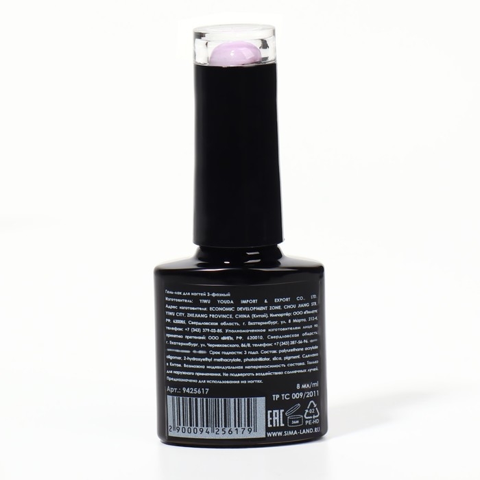 Гель-лак для ногтей трёхфазный LED/UV, 10мл, цвет В2-094 баклажан перламутровый