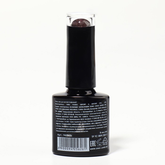 Гель-лак для ногтей трёхфазный LED/UV, 10мл, цвет В2-094 баклажан перламутровый