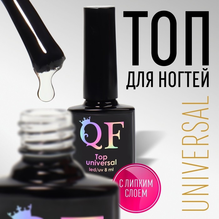 Топ для ногтей «UNIVERSAL», с липким слоем, 8 мл, LED/UV, цвет прозрачный