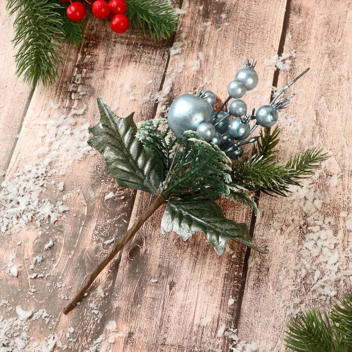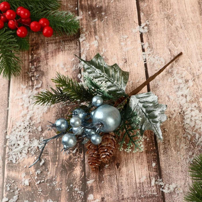Декор "Зимнее грезы" ягоды шишки веточки, 21 см, голубой
