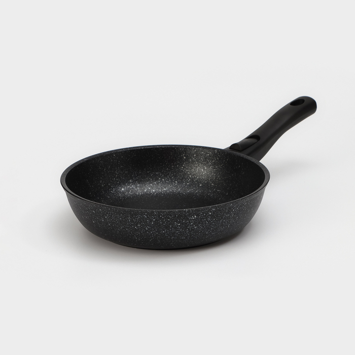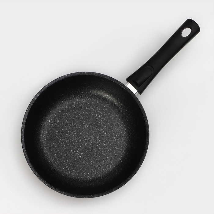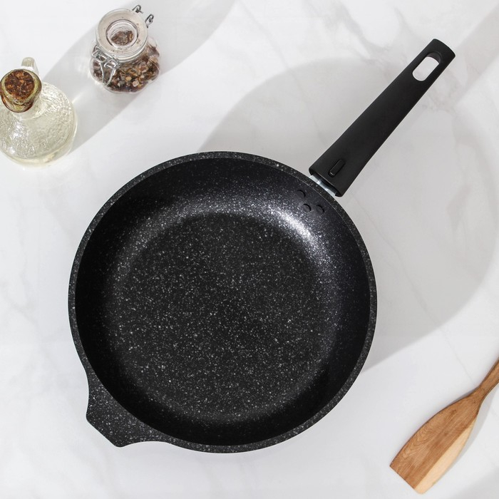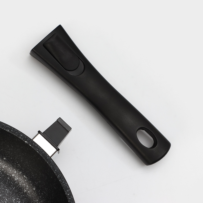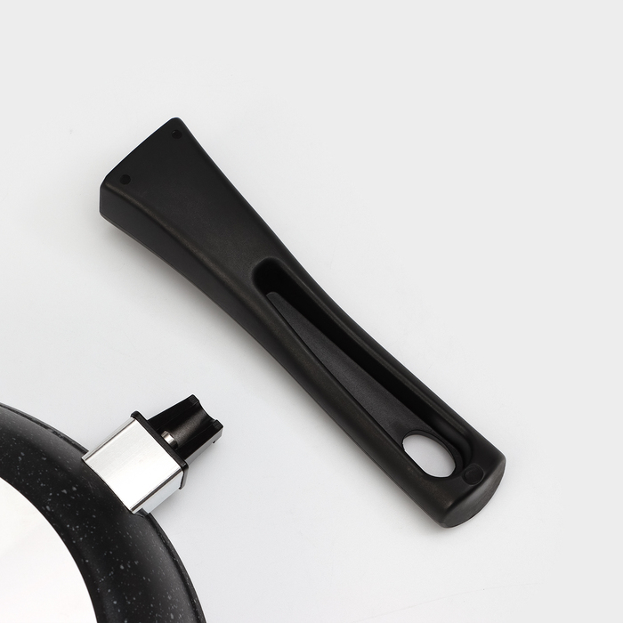 Сковорода, d=24 см, съёмная ручка, стеклянная крышка, антипригарное покрытие, цвет тёмный мрамор