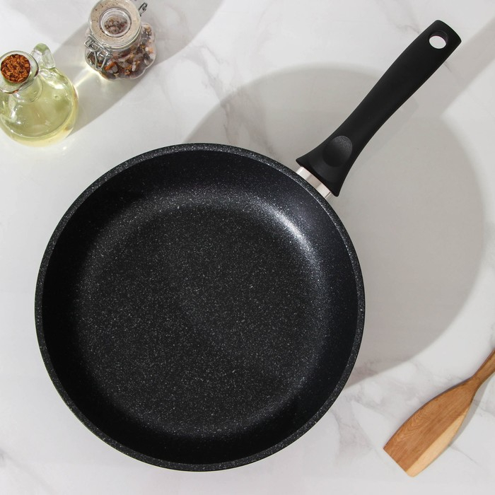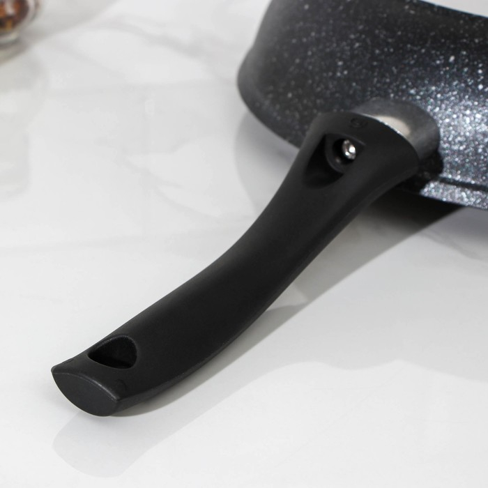Сковорода, d=26 см, пластиковая ручка, стеклянная крышка, антипригарное покрытие, цвет тёмный мрамор