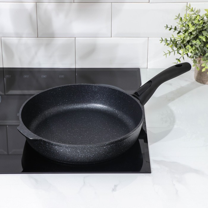 Сковорода, d=28 см, съёмная ручка, антипригарное покрытие, тёмный мрамор