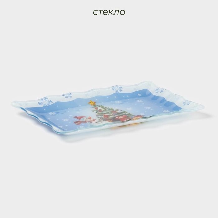 Блюдо стеклянное прямоугольное Доляна «Зимняя сказка», 25×15 см