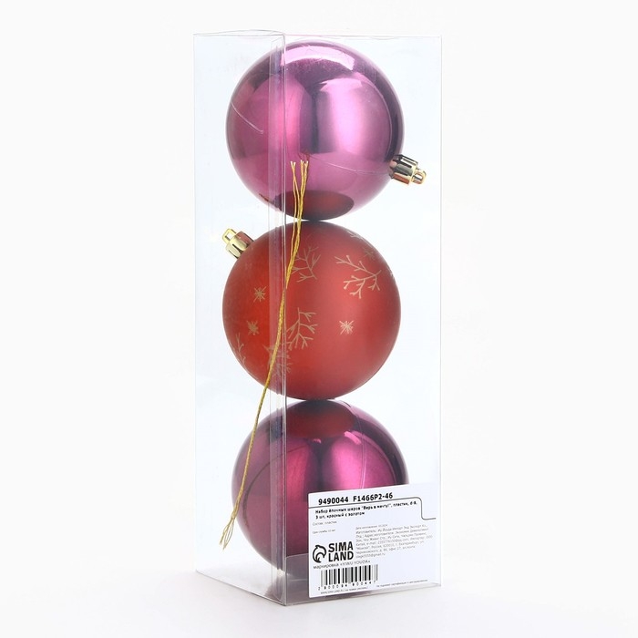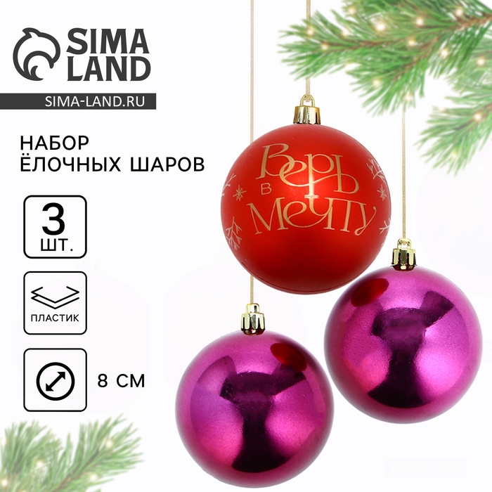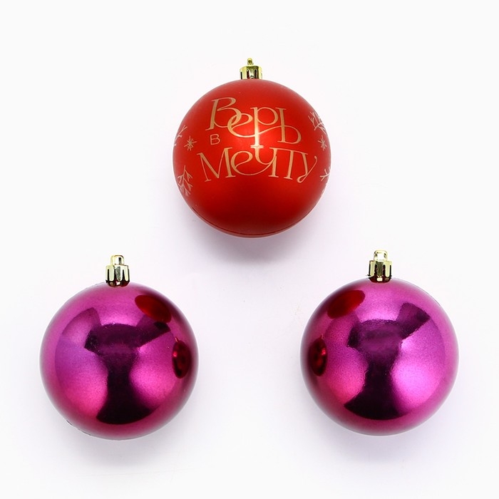 Шары ёлочные новогодние «Верь в мечту!», на Новый год, пластик, d=8, 3 шт., цвет красный с золотом
