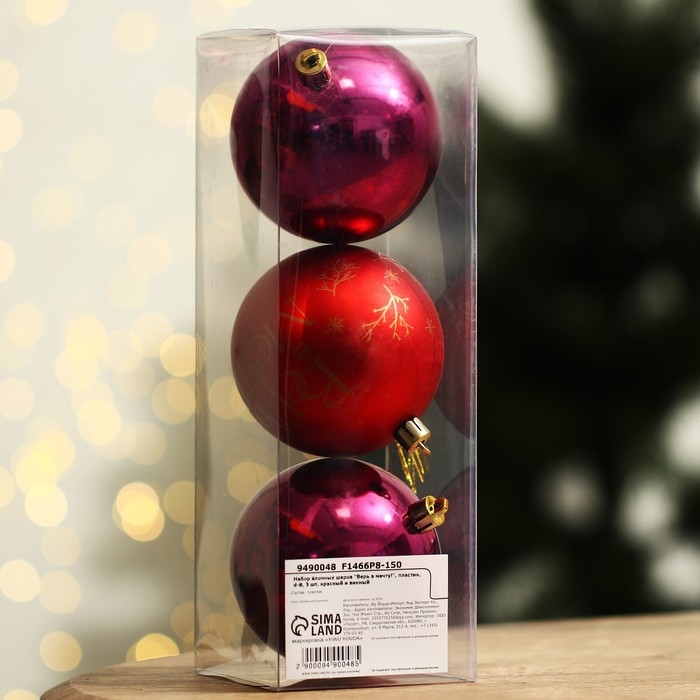 Шары ёлочные новогодние «Верь в мечту!», на Новый год, пластик, d=8, 3 шт., цвет красный и винный
