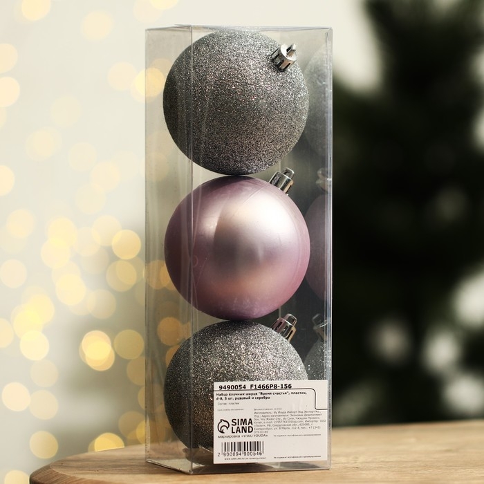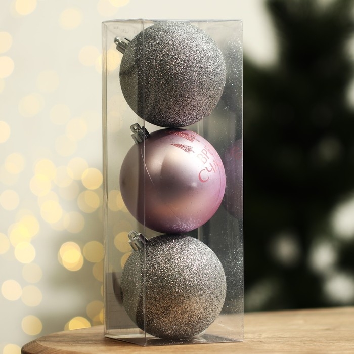 Шары ёлочные новогодние «Время счастья», на Новый год, пластик, d=8, 3 шт., цвет розовый и серебристый