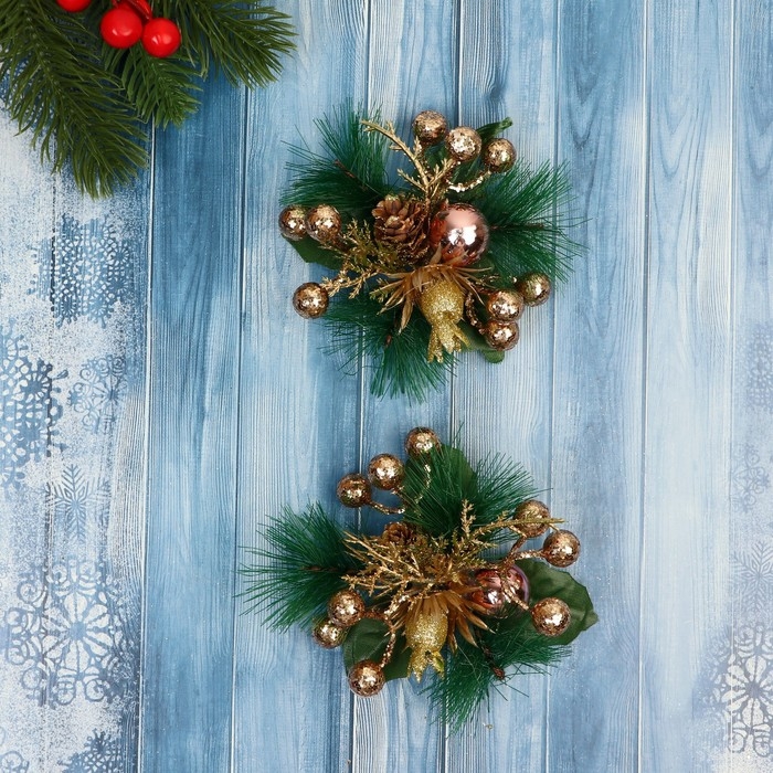 Украшение ёлочное "Еловая композиция" (набор 2 шт) золотые ягодки, 9х9 см