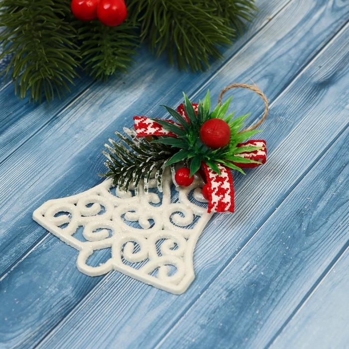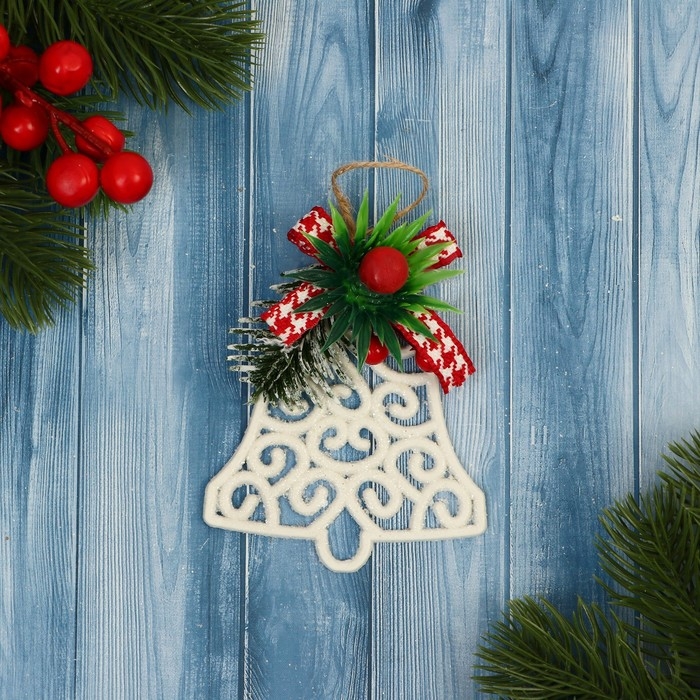 Украшение ёлочное "Колокольчик ажур" 7х8 см, белый