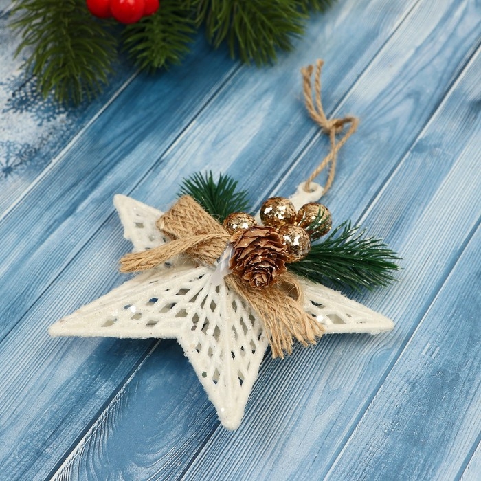 Украшение ёлочное "Звезда с композицией" 10х10 см, белый