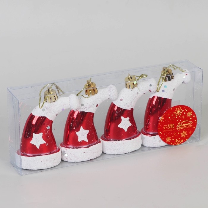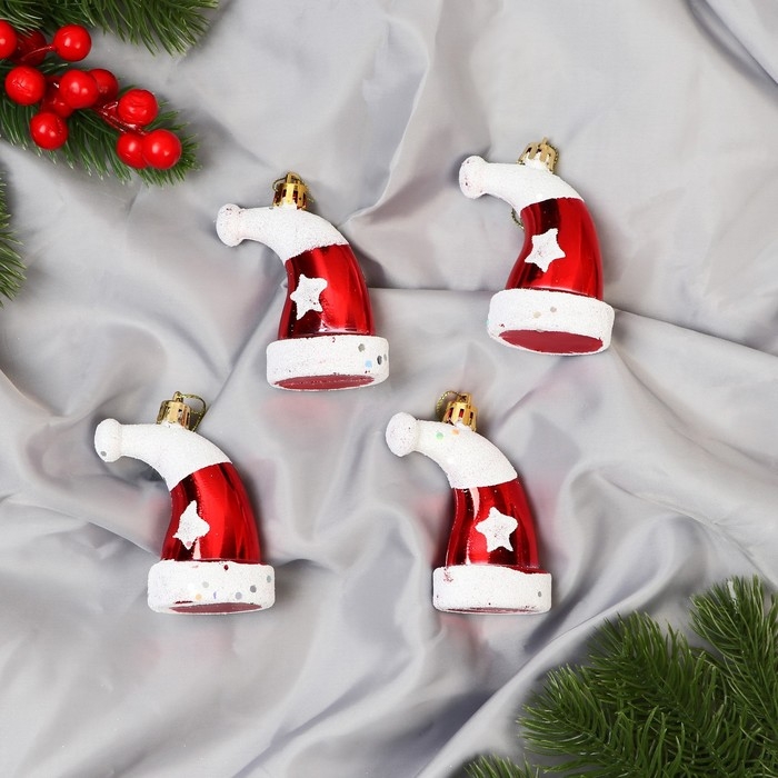 Украшение ёлочное "Колпак новогодний" (набор 4 шт) см, 4х7,5 см, красно-белый