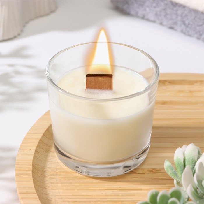Свеча из соевого воска в стакане с деревянным фитилем "Черная смородина", 65 гр