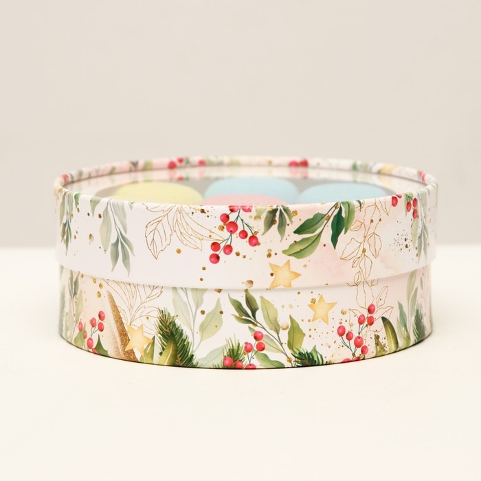 Элегантная коробка для макарун в тубусе с окном - идеальное сочетание стиля и внимания к деталям для вашего новогоднего подарка. Изготовленная из прочного картона, эта коробка не только сохраняет целостность содержимого, но и подчеркивает важность момента. Оригинальный дизайн придает ей уникальность, а прозрачное окно позволяет заглянуть внутрь, создавая загадочное предвкушение.