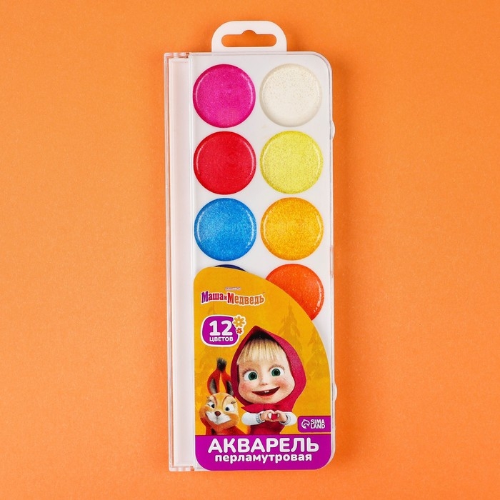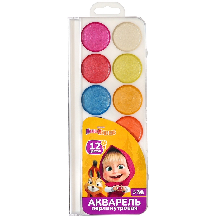 Акварель перламутровая "Маша и медведь", 12 цветов, без кисти