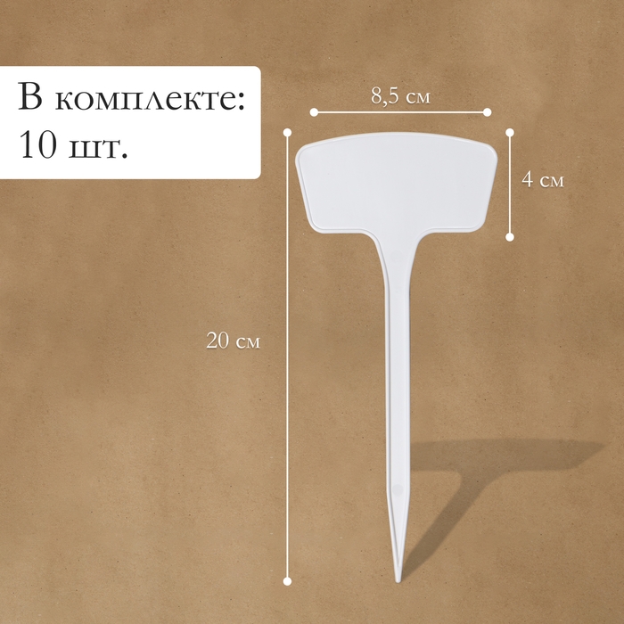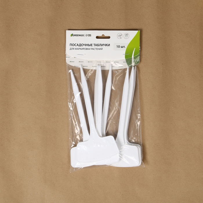 Таблички садовые для маркировки, 20 см, набор 10 шт., пластик, белые, Greengo