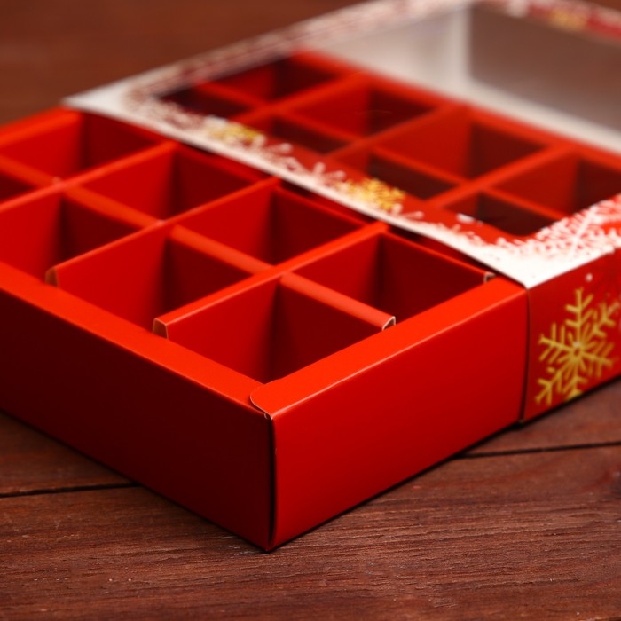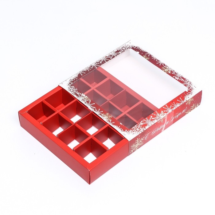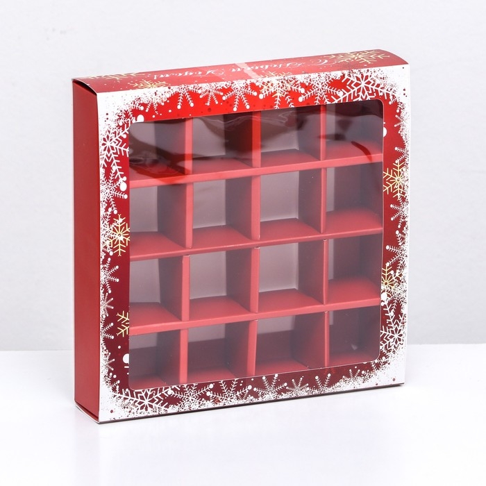 Новый год. Коробка под 16 конфет, 17,7х17,7х3,8 см, кондитерская упаковка