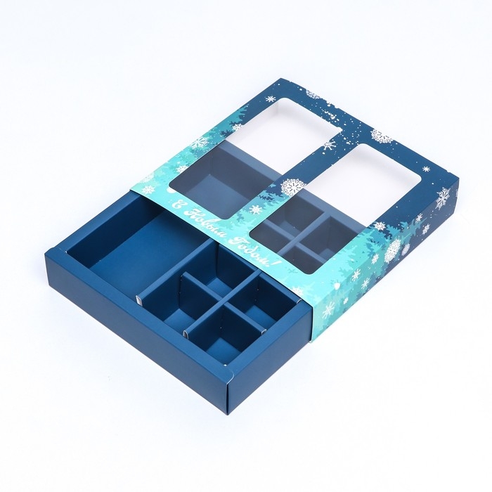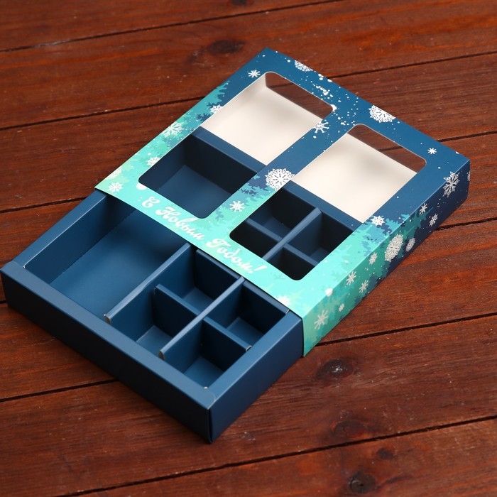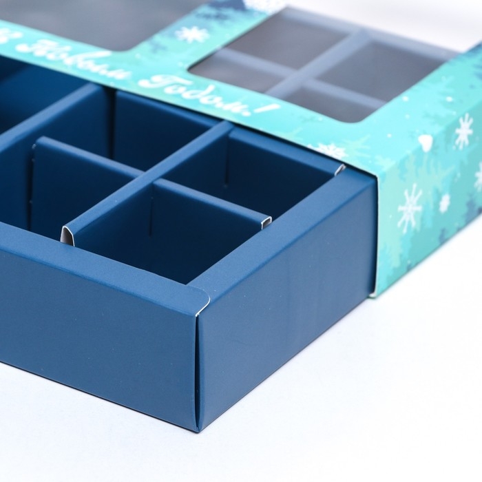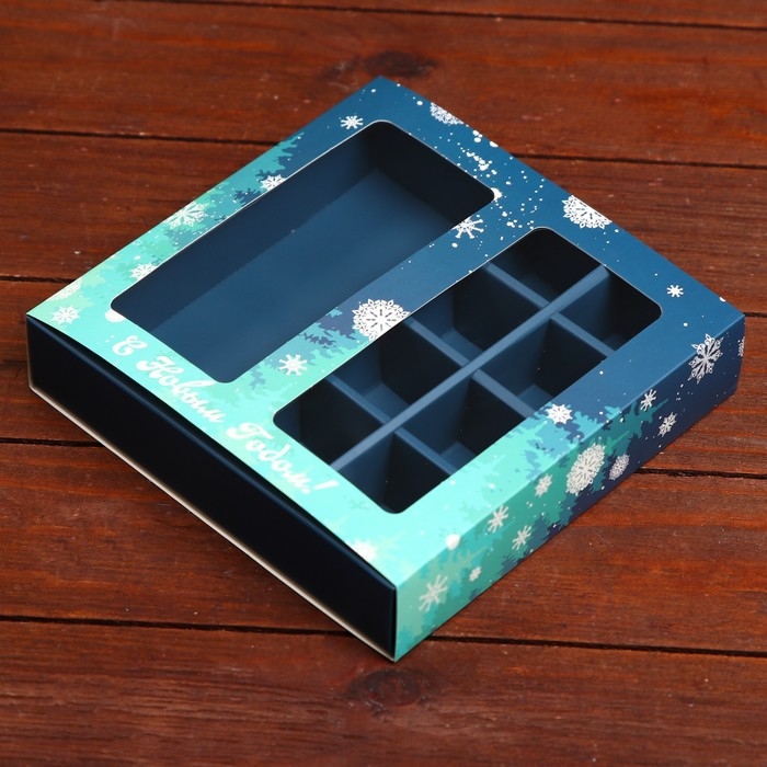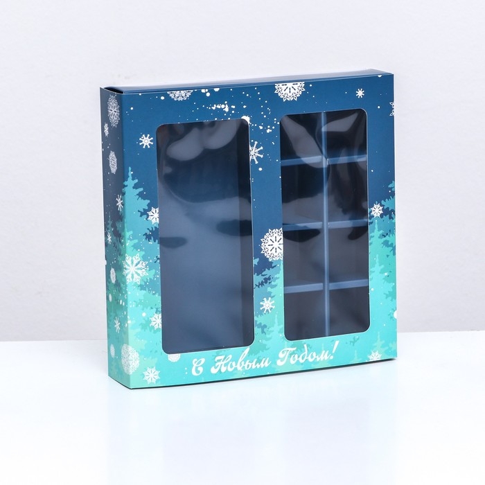 Новый год. Коробка под 8 конфет и шоколадки, 17,7х17,7х3,8 см, кондитерская упаковка