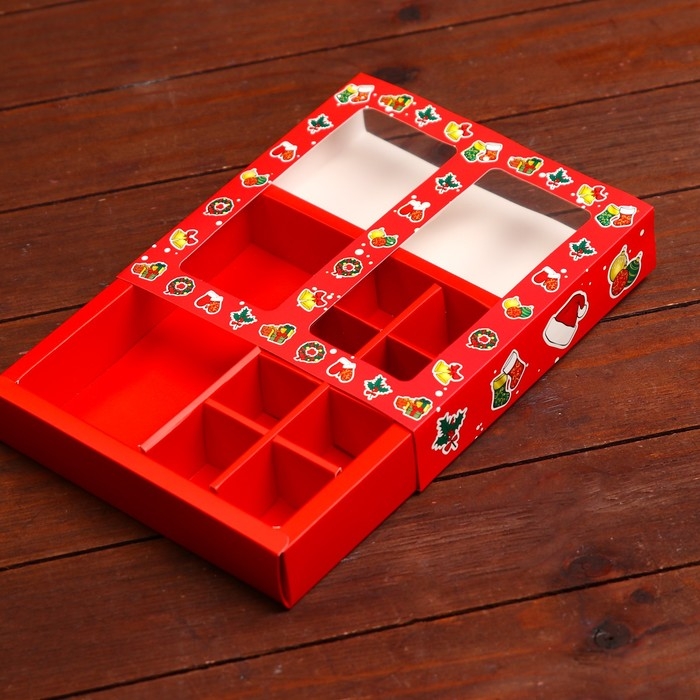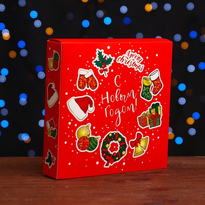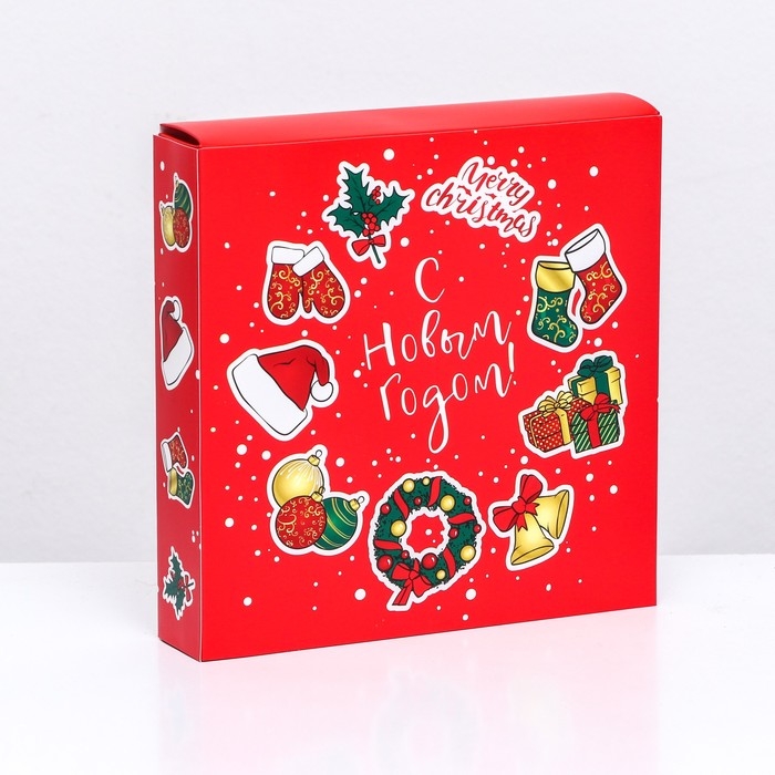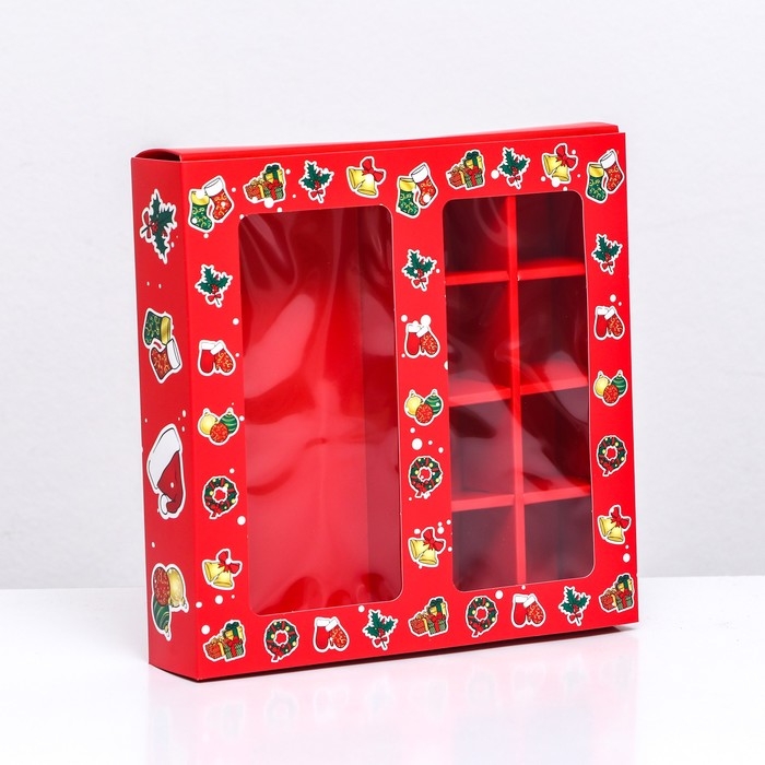 Новый год. Коробка под 8 конфет и шоколадки, 17,7х17,7х3,8 см, кондитерская упаковка