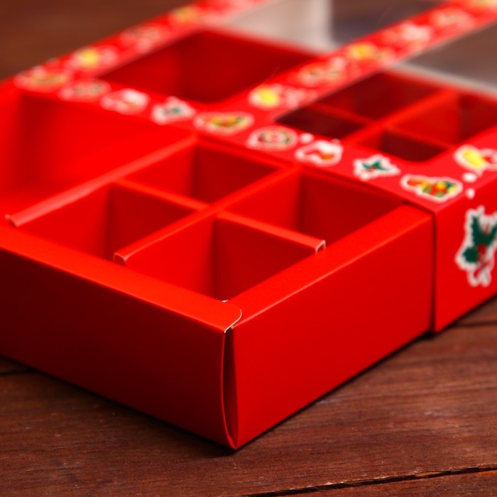 Упаковка для конфет 9 шт,14,5 х 14,5 х 3,5 см, красный