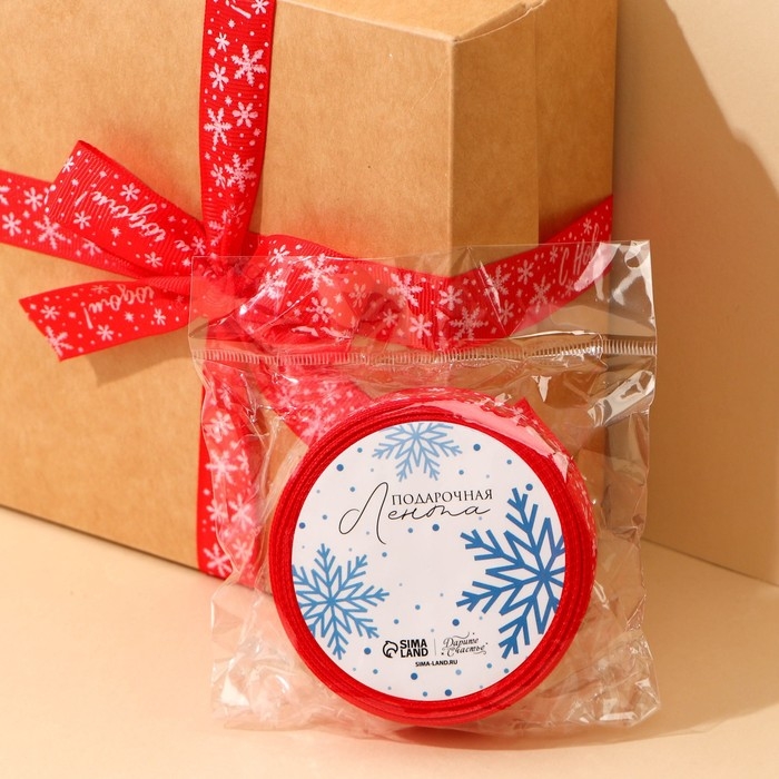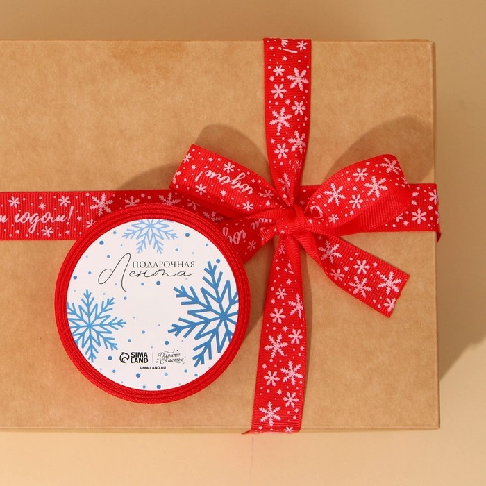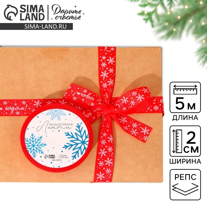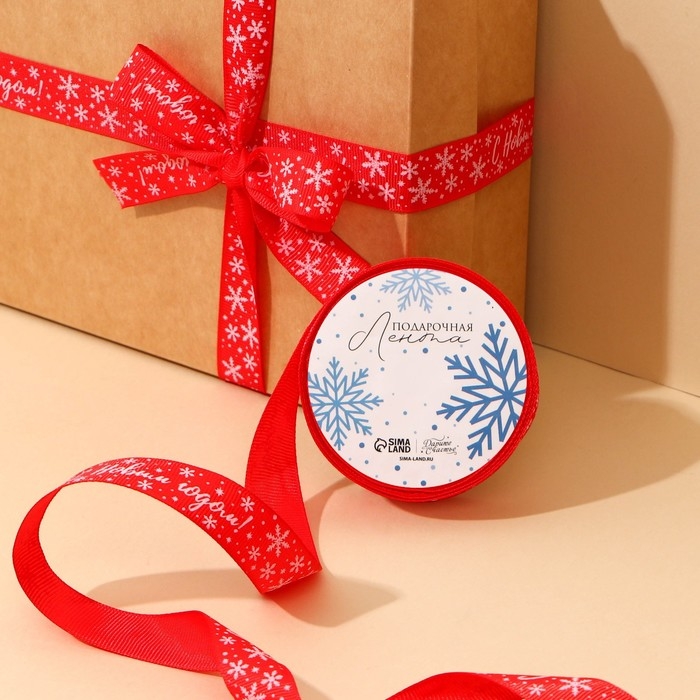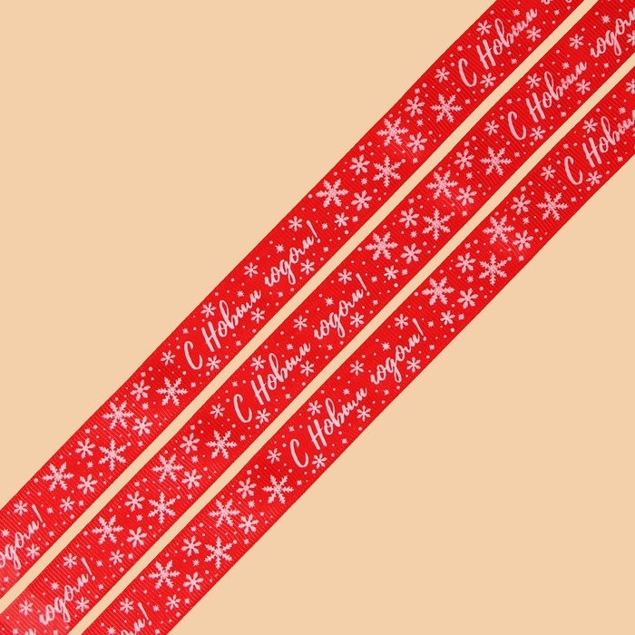 Лента декоративная репсовая «С Новым годом!», красная, 2 см × 5 м