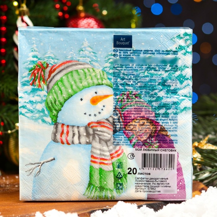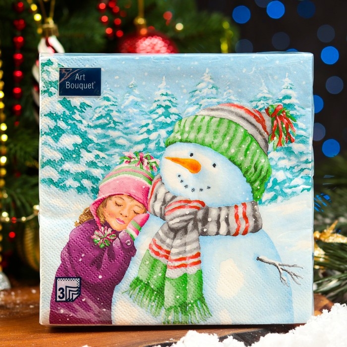 Новогодние салфетки бумажные Art Bouquet «Мой любимый снеговик», 3 слоя, 33х33, 20 шт.