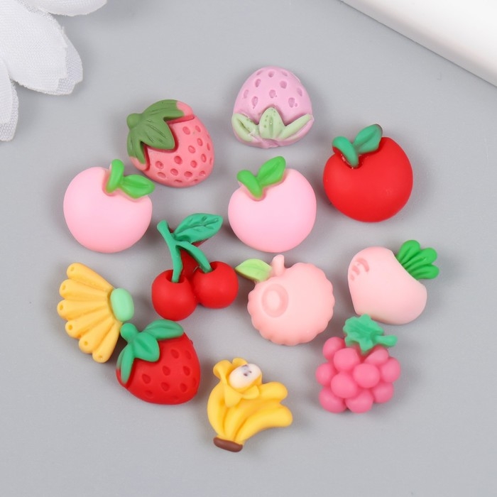 Декор для творчества пластик "Фруктово-ягодное ассорти" набор 12 шт 1,5х1,2 см