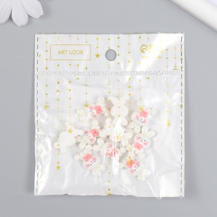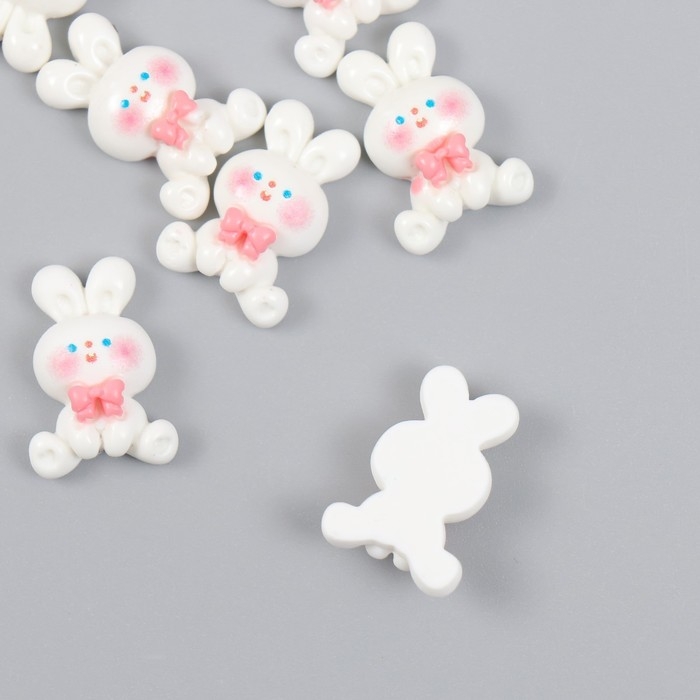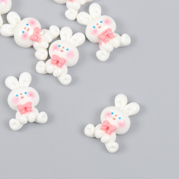 Декор для творчества пластик "Белый зайчик с бантиком" набор 10 шт 2х1,2 см