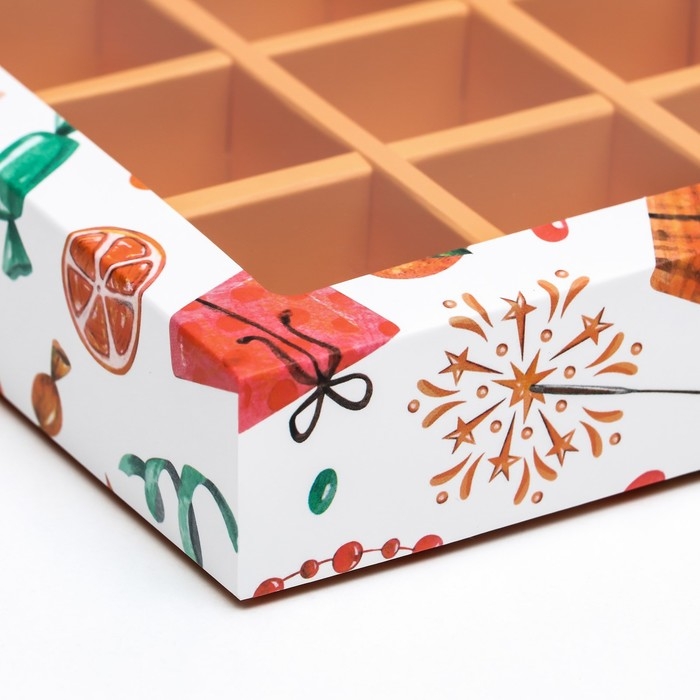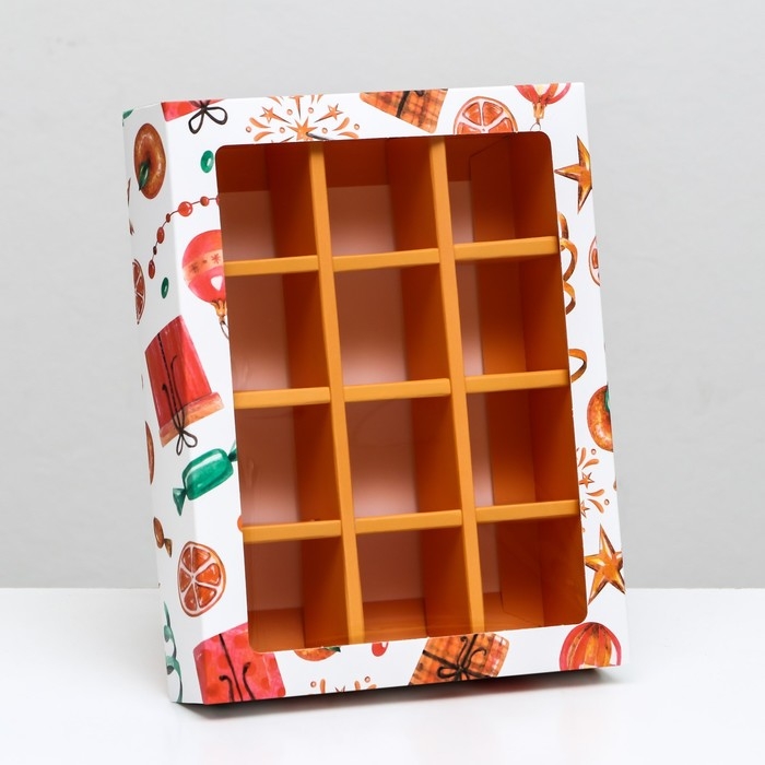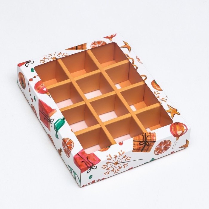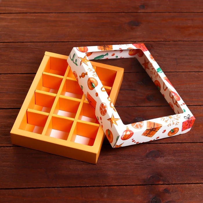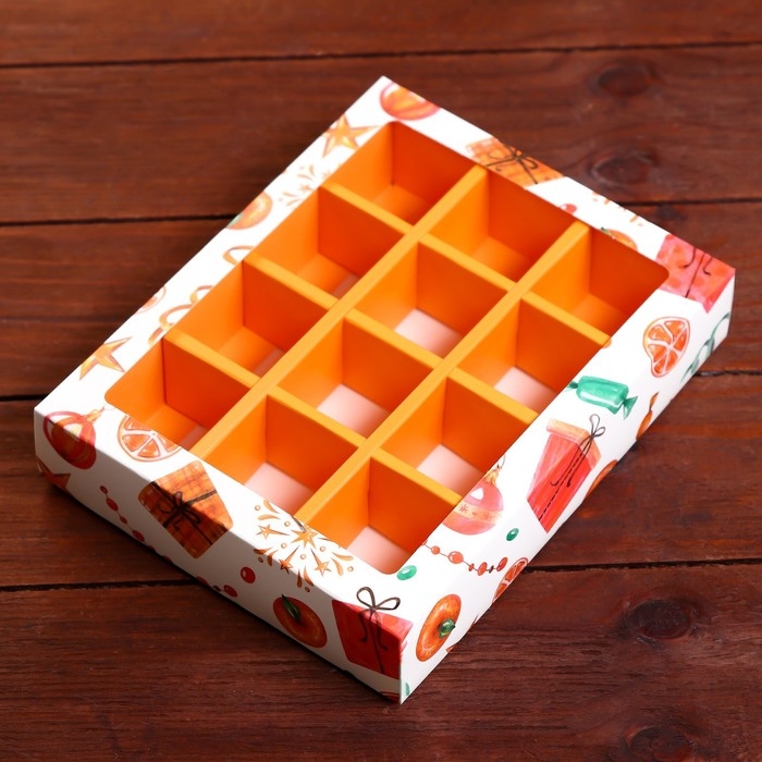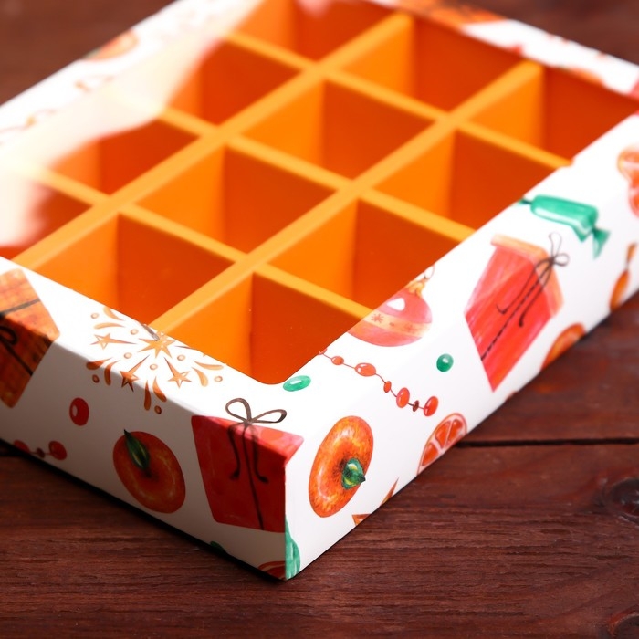Новый год. Коробка под 12 конфет "Мандарины", 19 х 15 х 3,6 см, кондитерская упаковка
