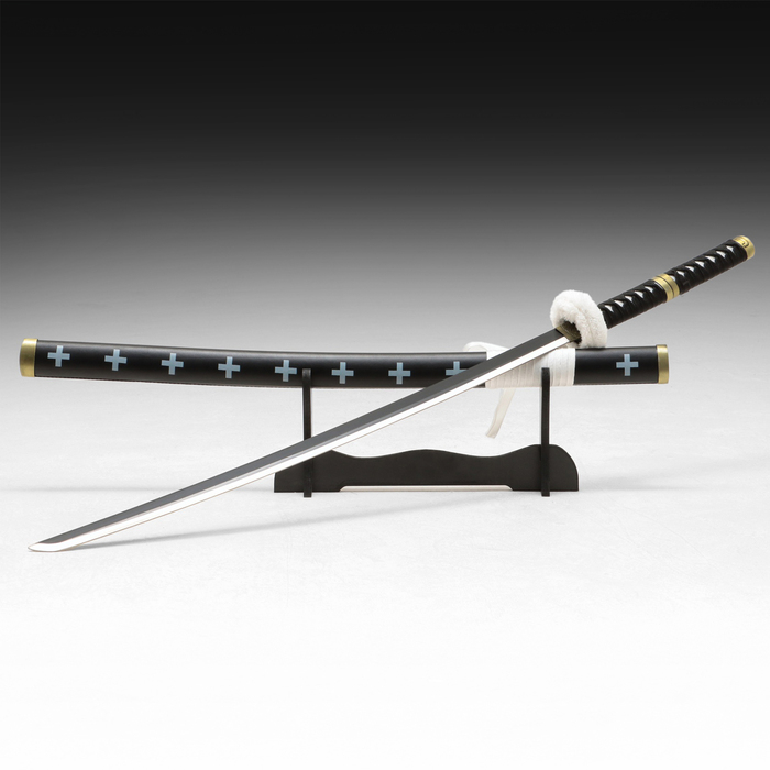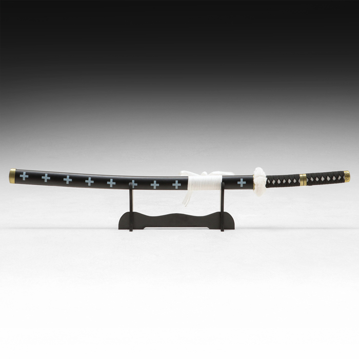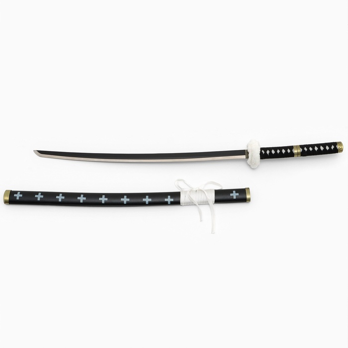 Сувенирное оружие "Катана Ло" 103 см, клинок 68 см, чёрная с белым, на подставке