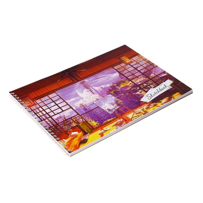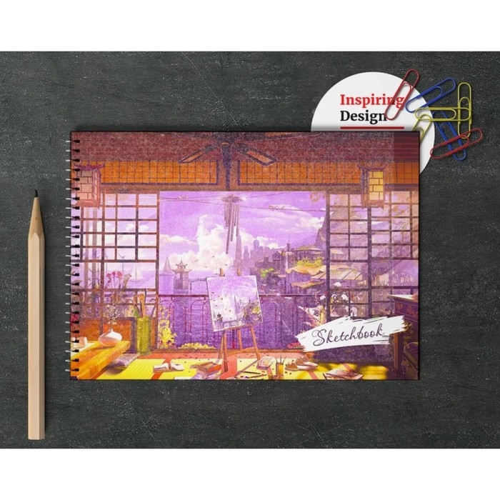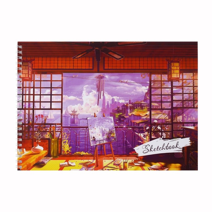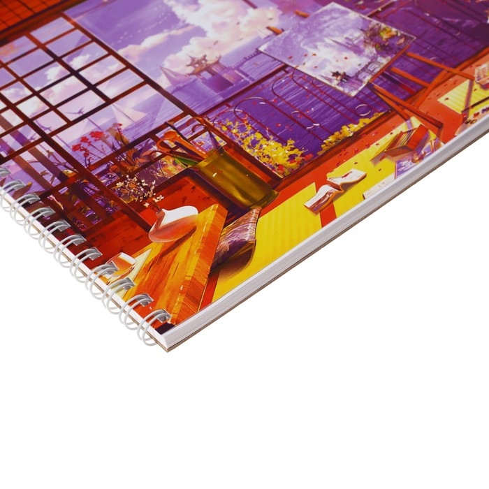 Скетчбук А4, 40 листов на гребне по короткой стороне "Картина маслом", обложка мелованный картон, твёрдая подложка, блок 100 г/м²
