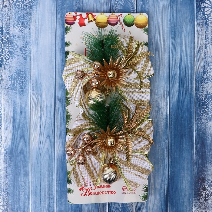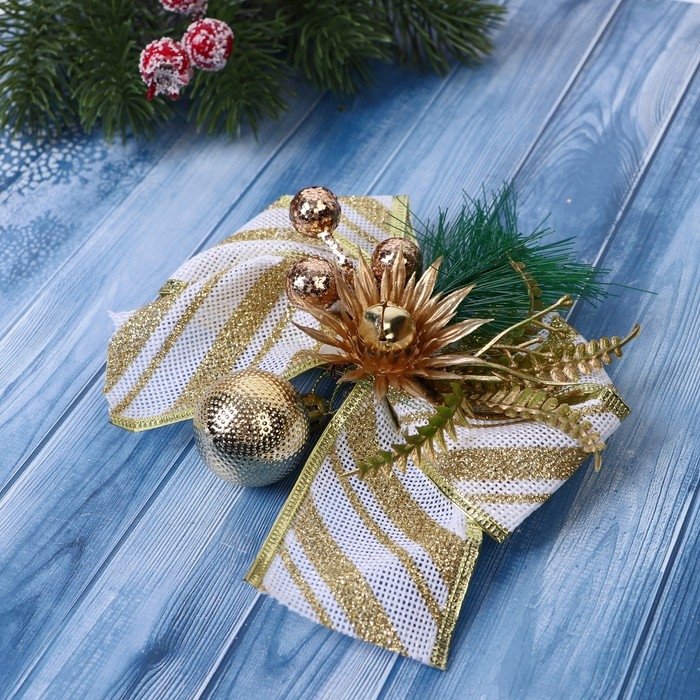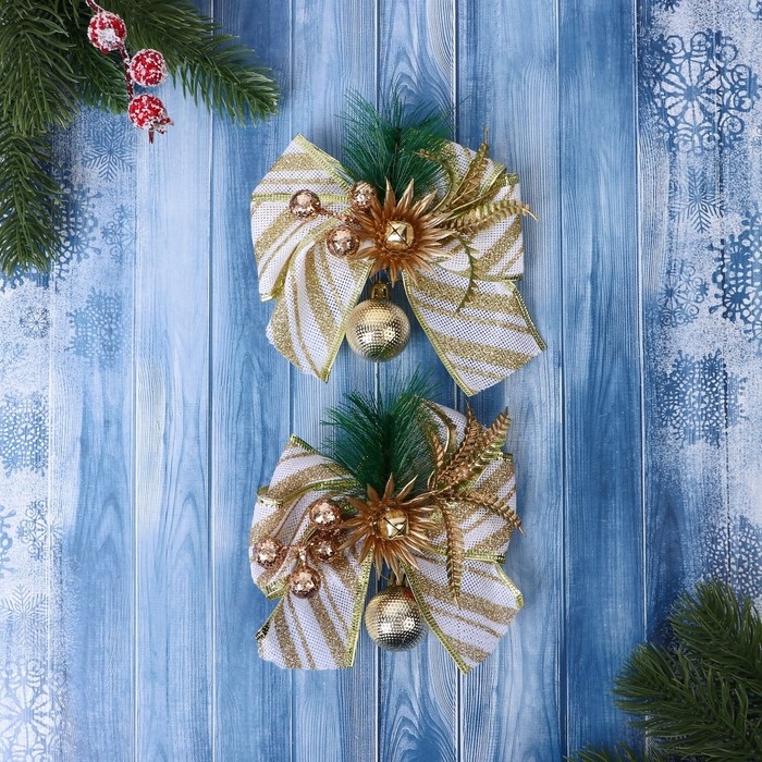 Украшение ёлочное "Еловая композиция" (набор 2 шт) бант с полосками, 13х12 см, бело-золотой 969287